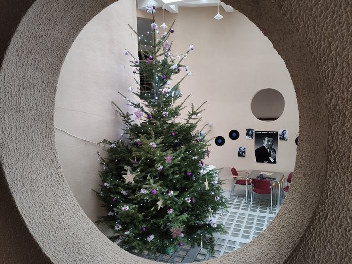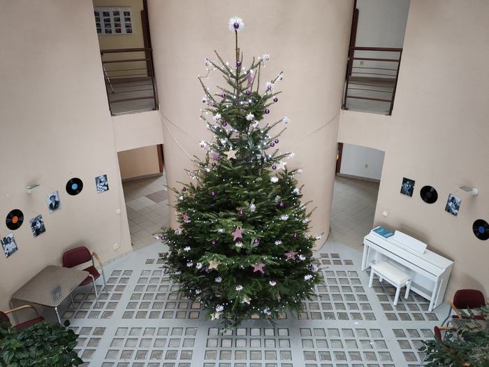 Hlavní vánoční strom DSSP se již tyčí v centru Domova pro seniory. Bílá a fialová barva mu opravdu sluší. Naše zařízení je však obrovské a tenhle strom má spoustu dalších kámošů. A všechny vám již brzy ukážeme. Přejeme krásné zimní dny ![]()
